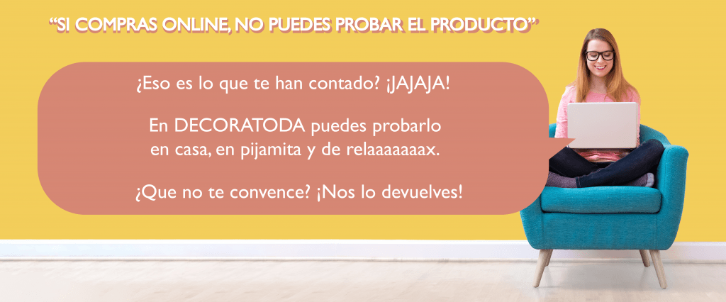 Y es que, pensándolo bien, las diferencias entre los comercios tradicionales y los virtuales cada vez son menores si sopesamos que la compra de un sofá o colchón se hace a ciegas si no se ofrece una garantía de prueba del producto. Y es este punto es el determinante para elegir Decoratoda como la tienda online que buscas: en cualquier tienda del sector probarás 10 minutos el sofá o colchón antes de llevártelo a casa, en Decoratoda lo harás 30 días. Además, el factor precio es importante por dos motivos: podemos abaratar costes al trabajar directamente con fábrica y podemos ofrecer el mejor precio mínimo garantizado sin competencia, algo que los establecimientos convencionales no pueden tener.